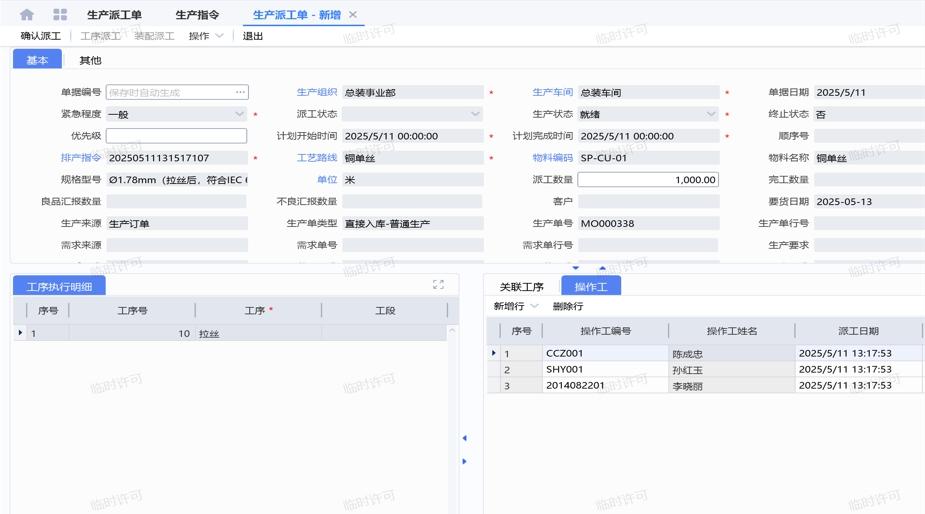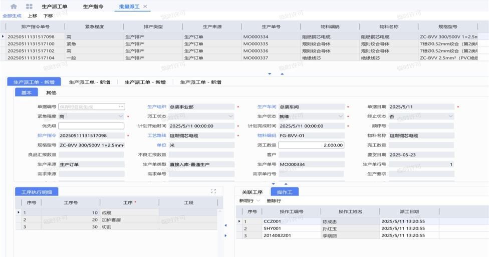 车间接收计划后,车间主管根据产线或班组、人员岗位进行工序派工生产。