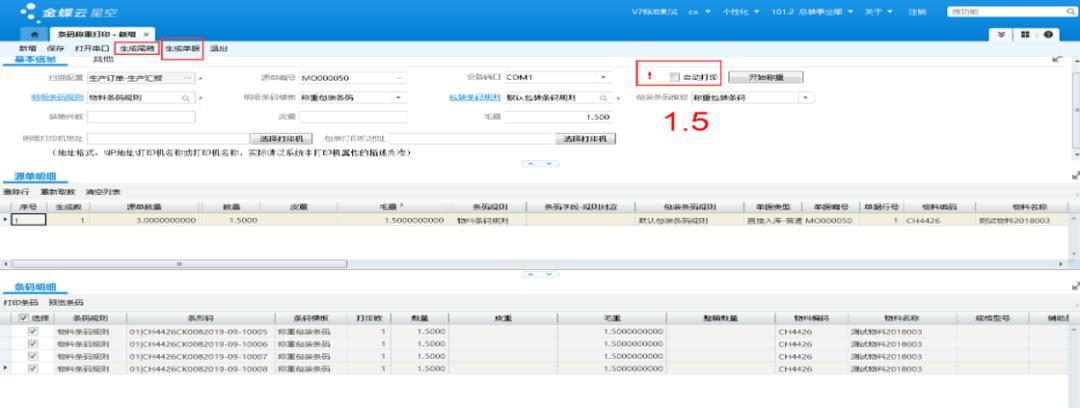 · 支持自主设定规则称重生成打印明细条码及箱条码标签;