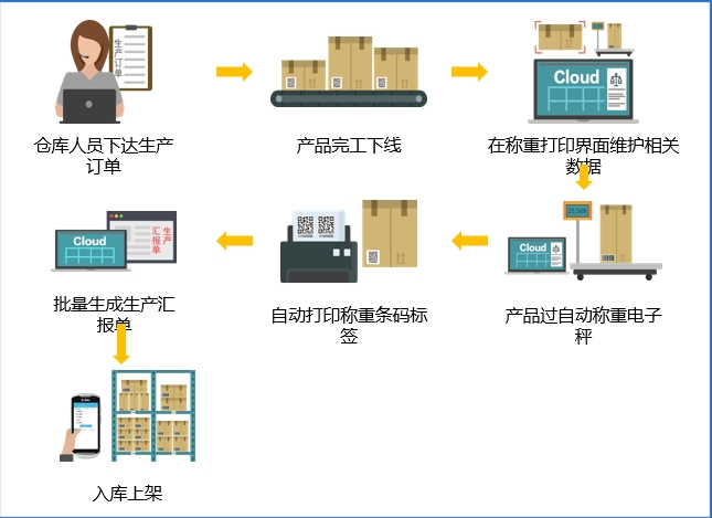 · 通过称重记录,办理成品生产入库,保证库存数据的准确性。