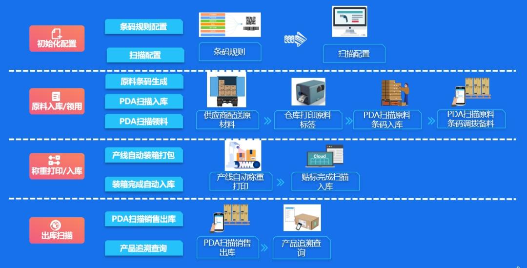 ● 配置内容:基于前文所述业务及特性,初始化工作主要涵盖条码属性设置、条码规则制定,以及系统参数与扫描配置的新增。完成配置后,需结合实际业务操作对流程进行验证与调试。